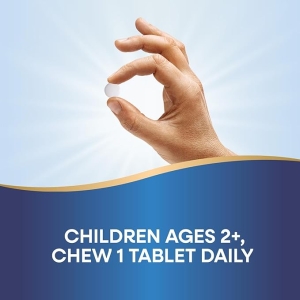 Para niños de 2 años en adelante, mastique 1 tableta al día bajo la supervisión de un adulto. Mastique bien la tableta antes de tragarla. Si está embarazada, amamantando o tomando algún medicamento, consulte a un profesional de la salud antes de usarlo.