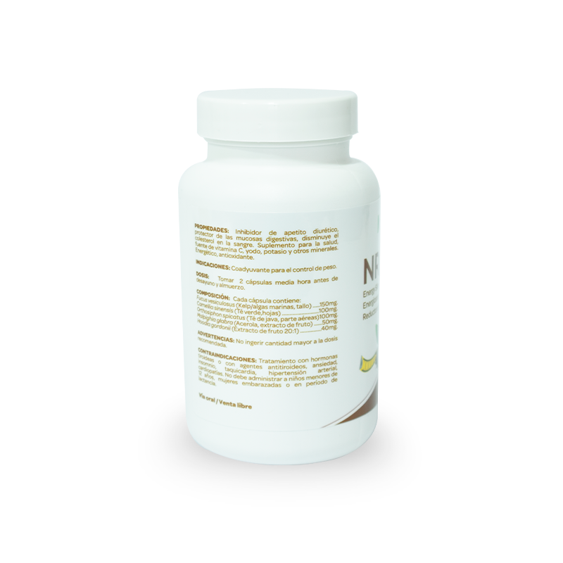 NRG (Reductor del apetito) Nutramedix® es una fórmula creada para ayudarte a alcanzar tus objetivos de control de peso de manera natural. Cada cápsula combina el poder de varias plantas con propiedades medicinales y nutritivas, ofreciendo beneficios múltiples en un solo producto. La alga kelp (Fucus vesiculosus) aporta minerales esenciales, incluyendo yodo, que favorece el correcto funcionamiento de la tiroides, ayudando a regular el metabolismo y reducir el apetito. El té verde (Camellia sinensis) actúa como un energizante suave y antioxidante, apoyando la quema de grasas y protegiendo las células de los radicales libres. El té de java (Orthosiphon spicatus) es reconocido por sus propiedades diuréticas, ayudando a eliminar líquidos y toxinas, mientras que la acerola (Malpighia glabra), rica en vitamina C y antioxidantes, contribuye a reforzar el sistema inmunológico y a mejorar la absorción de nutrientes. Por último, la hoodia (Hoodia gordini) es conocida por su efecto supresor del apetito, lo que facilita mantener una ingesta calórica controlada.