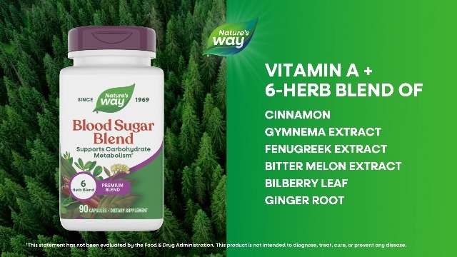 Blood Sugar Manager de Nature s Way es una mezcla premium de seis hierbas de canela, gimnema, fenogreco, melón amargo, higo chumbo y arándano. Es una fórmula que ayuda a mantener niveles saludables de azúcar en la sangre y apoyar el metabolismo de la glucosa.