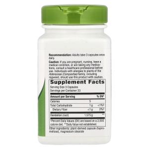 Si está embarazada, amamantando, tiene una condición médica o toma algún medicamento, consulte a un profesional de la salud antes de usar. Las personas con alergias a las plantas de la familia Asteraceae (Compositae), incluida la ambrosía, deben usar este producto con precaución. Mantener fuera del alcance de los niños. Sellado de seguridad con sello interior impreso. No lo use si el sello está roto o falta.