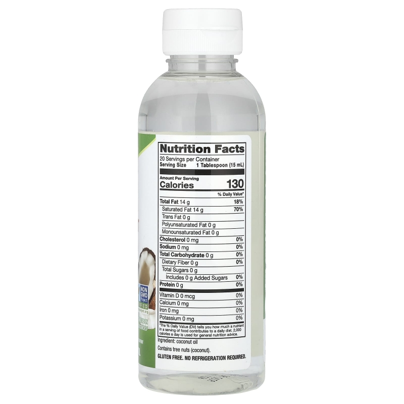 El aceite cuenta con un sabor y aroma superiores de fuente premium, cocos sin hexano verificados por proyectos no modificados genéticamente. Se mantiene líquido incluso cuando está refrigerado.