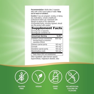 Descubre el poder de la naturaleza con Urinary Nature’s Way, tu aliado para promover una salud urinaria óptima. Este suplemento único combina 600mg de Concentrado de Fruta de Arándano, conocido por su capacidad para prevenir infecciones urinarias, con una selección exclusiva de hierbas medicinales. Cleavers (150mg), Corn Silk (150mg), Dandelion (150mg), Marshmallow Root (150mg) y Goldenseal (60mg) trabajan en sinergia para apoyar la limpieza renal y la salud del tracto urinario.