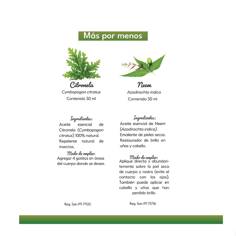 Incluye un aceite Citronela D natura y Neem D natura.