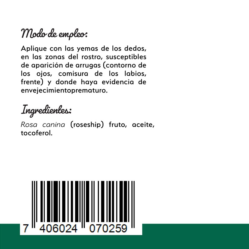 Descubre el poder regenerador del aceite de Rosa Mosqueta D natura, extraído de las semillas del escaramujo. Enriquecido con ácidos grasos esenciales y vitaminas antioxidantes, este aceite promueve la cicatrización, atenúa arrugas y mejora la apariencia de la piel dañada. Su suavidad permite aplicarlo directamente sobre el rostro, absorbiéndose fácilmente sin dejar residuos grasos. Ideal para pieles secas, con cicatrices, estrías o quemaduras. Experimenta una piel suave, hidratada y radiante con el aceite de Rosa Mosqueta D natura.