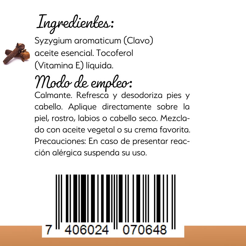 Este aceite esencial puede aplicarse tópicamente para aliviar la tensión muscular y promover la relajación, o añadirse al agua del baño para disfrutar de un momento de spa rejuvenecedor. También es una excelente opción para la terapia de masaje cuando se diluye en un aceite portador adecuado. Además, el aceite de Clavo puede añadirse a un difusor para crear una fragancia edificante y reconfortante en cualquier espacio.