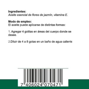 Descubre la esencia de la felicidad con Jazmín Flor D natura, un aceite esencial que despierta tus sentidos y eleva tu bienestar. Proveniente de una de las flores más exquisitas, el jazmín, este aceite encierra propiedades estimulantes, analgésicas y antiinflamatorias. Sumérgete en su aroma embriagador que calma la ansiedad, libera el estrés y mejora tu estado de ánimo, brindándote una sensación de paz y tranquilidad. Además, su uso en cuidado de la piel aporta astringencia y antioxidantes para una belleza natural.